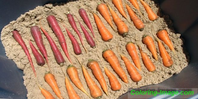 Ak máte pivnicu, musíte ju vysušiť, bieliť, dezinfikovať a zabezpečiť dobré vetranie. Výber spôsobu konzervácie závisí od úrovne vlhkosti v miestnosti. V prípade jeho nedostatočnosti je lepšie použiť vlhkú hlinku alebo piesok. Za týmto účelom pripravte ílovú zmes hlinitých (nie riečnych) vrstiev. Spodná časť krabice položila vrstvu ílu v 1-2 cm, a potom prvý rad mrkvy. Koreňová zelenina by sa nemala dotýkať. Rovnakým spôsobom ukladajte všetky ďalšie rady mrkvy. Mokrý piesok sa ukladá rovnakým spôsobom.